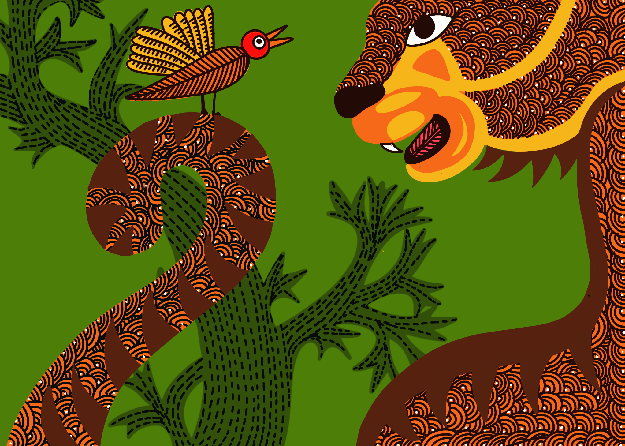 This digital Gond art piece, created on Procreate, is inspired by Collarwali—the famed tigress of Pench, Madhya Pradesh. Her legacy revived tiger conservation and awareness in India. The artwork features traditional Gond patterns drawn from nature and daily life. I used Narmada Prasad Tekam’s motif, symbolizing lines connecting past to present.
